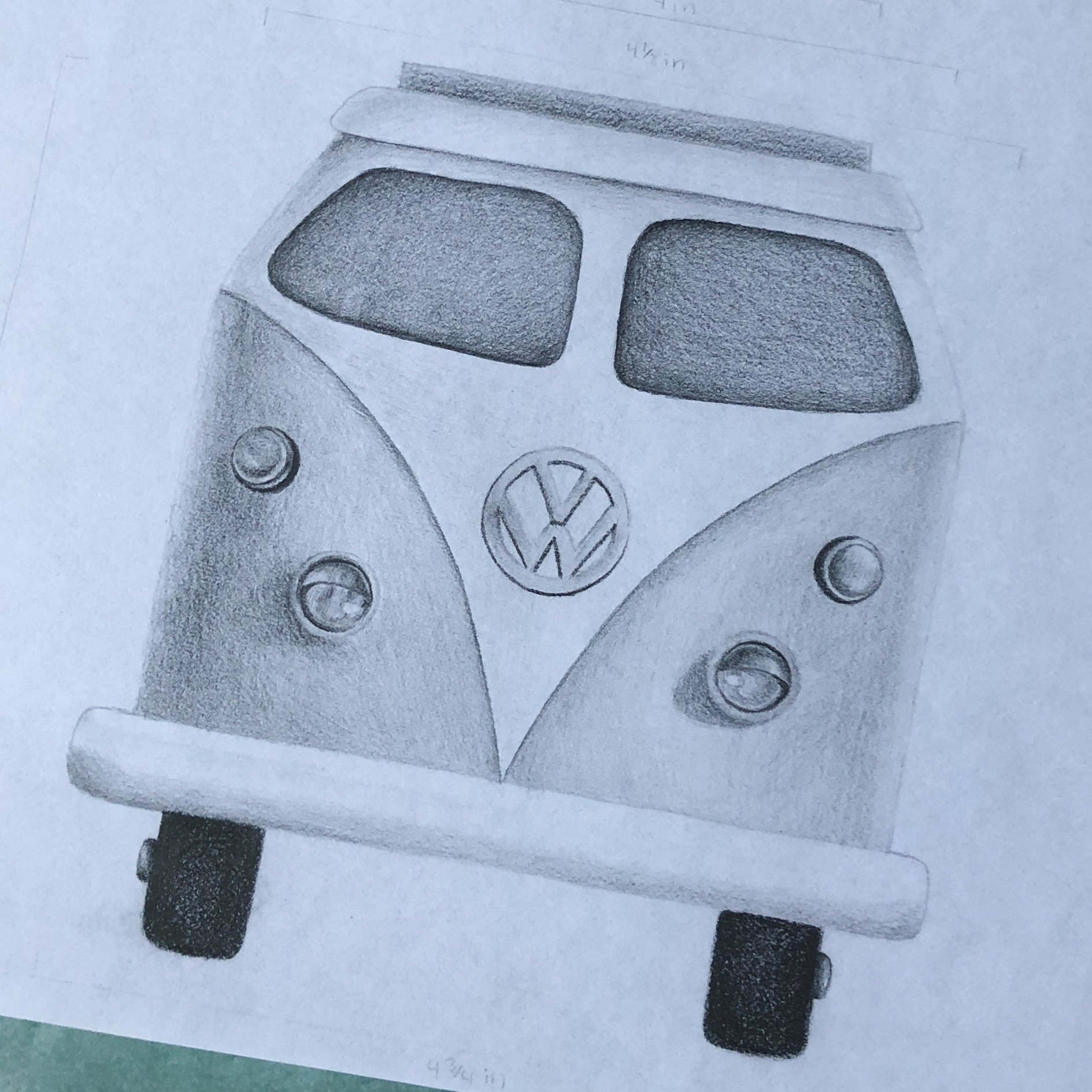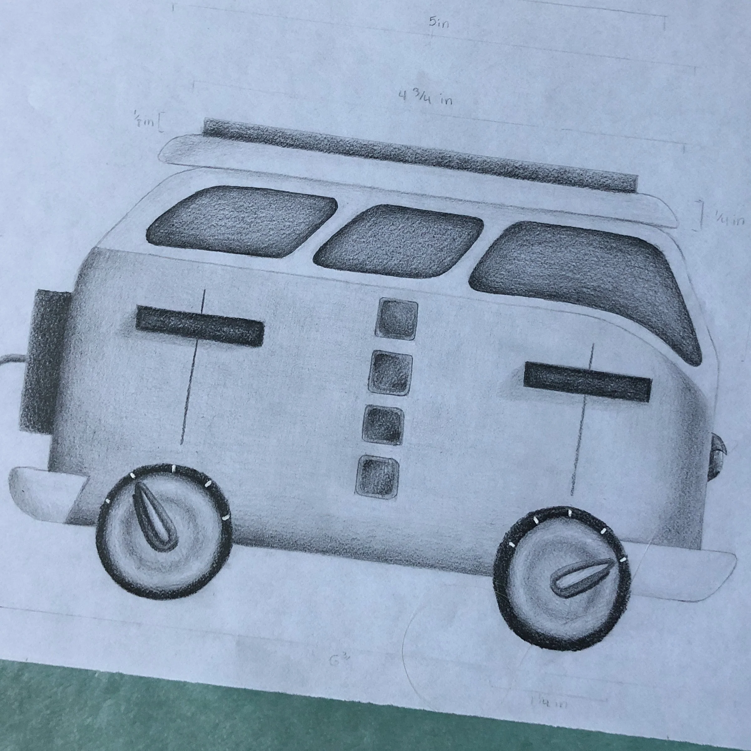 ChallengeDesign a unique and fun toaster. SolutionGraphite and alcohol marker renderings of VW Bus Toaster concept.